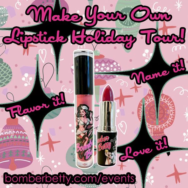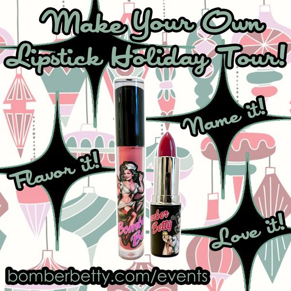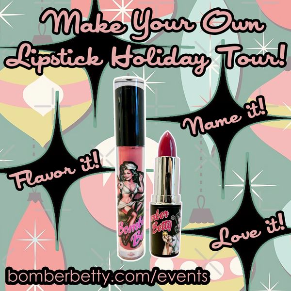 Join Jessica, creator of Bomber Betty Custom Cosmetics, as she creates a custom lipstick or gloss for you in any color you can dream up! Come with a shade in mind, or let Jessica come up with something for you based on your coloring. She will mix the pigments and frosts right before your eyes, and you will try on the color as it is created to make sure it is just right, flavor it with your favorite scent, and name it! You are going to love it!